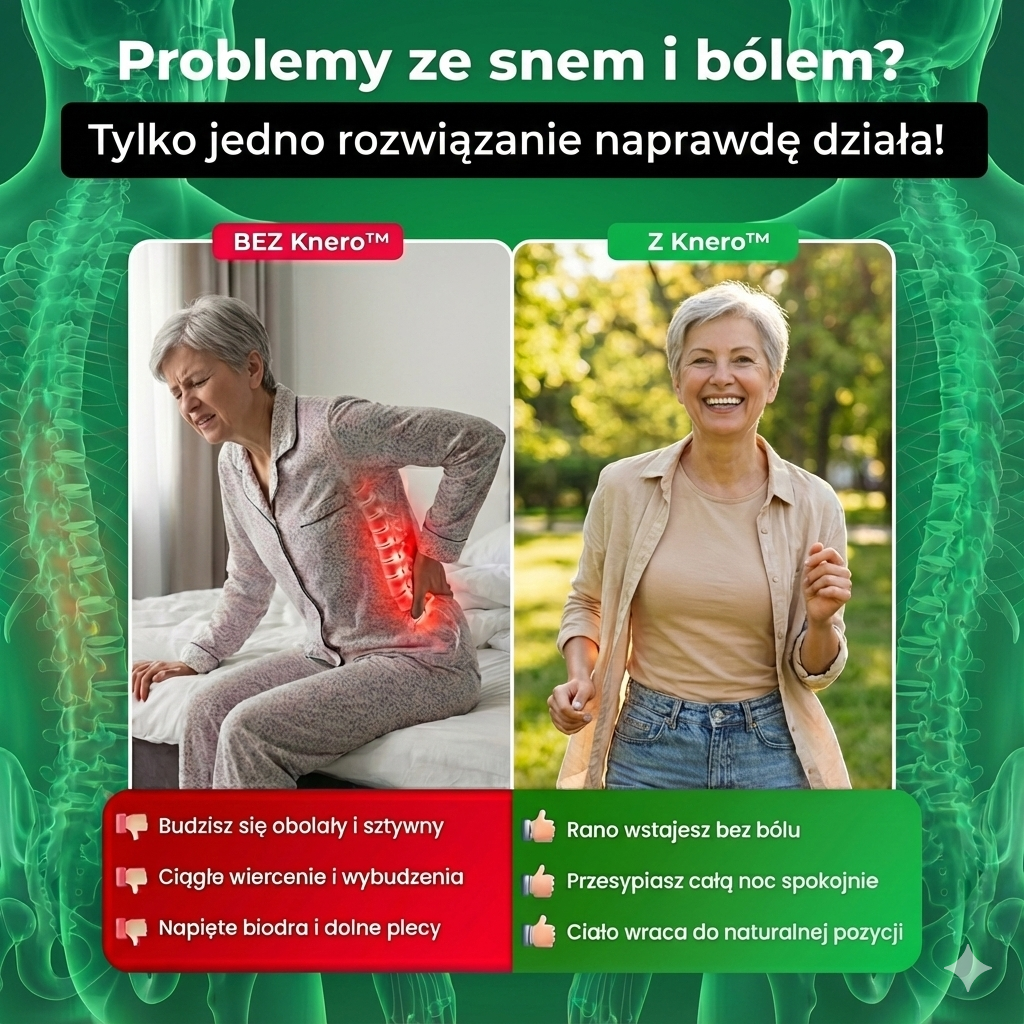 ”„Codziennie budziłam się z bólem krzyża i bioder. Po pierwszej nocy z Knero™ poczułam różnicę, a po tygodniu wstaję bez żadnej sztywności. To pierwsza rzecz, która naprawdę przyniosła mi ulgę.”